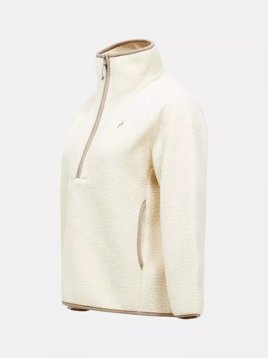 Kanting langs åpningen på håndlommene, elastisk kanting langs kragen, glidelås i front, nederkant og mansjetter, halv glidelås med YKK Vislon®-glidelås, hempe i nakken utvendig, laget uten bevisst tilsatt PFAS, mellomtykt 325 gsm pilemateriale med myk jersey på innsiden, smale flatlock-sømmer, P-logo-broderi på brystet, refleksdetaljer på glidelåstrekkere.